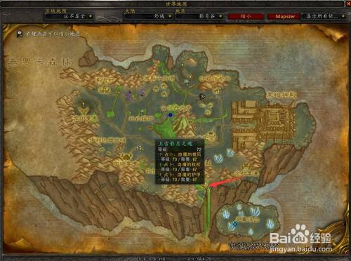 在影月谷地图上下图所示位置,找到NPC[上古影月之魂]接取使命[占卜:血魔的权杖]。