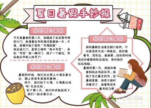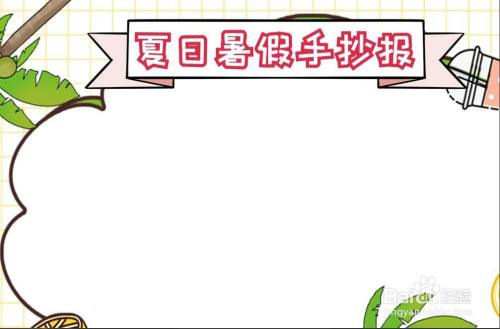 画一个花边,配上椰子树、柠檬等装饰物,并在白纸上画少许方格;