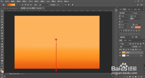 打开PS软件,先新建一张布景,然后选择左边东西栏的【渐变东西】,在点击左上角的颜色渐变进行颜色更改,如图2。