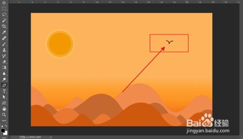 选择【钢笔东西】快捷键P,然后再布景上画出山丘的样子。