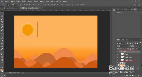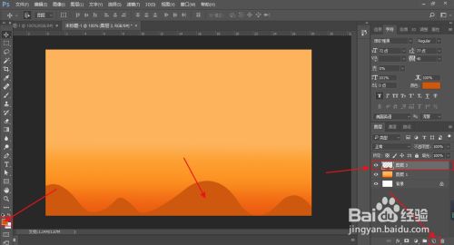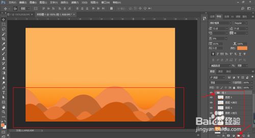 依次的复制山区,填充山此外颜色,深浅有别,形当作条理感。