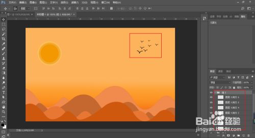 最后在复制一些大雁的图层,由近大远小的道理调整一下。(调整大小可以用快捷键 Ctrl +T 来更改)