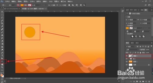 选择左边的【椭圆东西】在布景上画一个圆,顶上的填充和描边看一下。