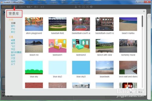 打开scratch的布景库;