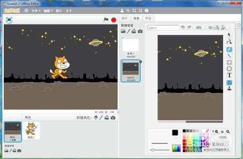 我们就在scratch中添加当作功了一个宇宙布景。