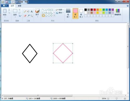 左手按下shift键,右手按住鼠标左键不放,拖动鼠标,画出一个粉色的菱形,四条边很直。