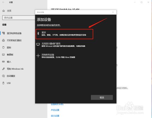 在弹出的添加设备框中选择需要毗连的蓝牙设备。