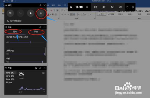 6、若是需要声音的话录制时可以打开麦克风,下面有个音频的选项,可以进行选择,夹杂、语音等。
