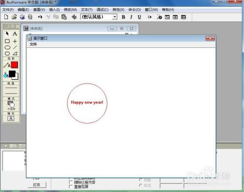 在圆形内部点击鼠标左键,呈现一个文本输入框,输入文字Happy new year!