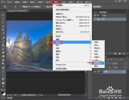 点击滤镜菜单,选择扭曲里的扭转扭曲;