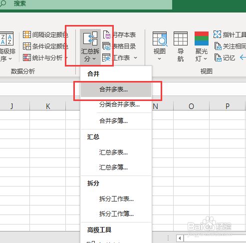 2、点击下图选项(Excel东西箱,百度即可领会具体的下载安装信息,本文这里就不做具体讲解)