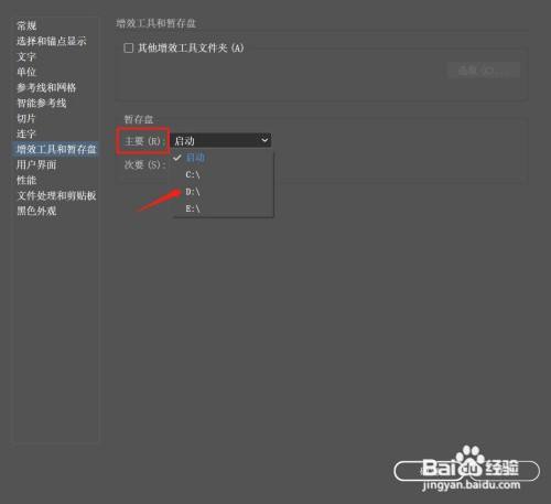 3、点击“增效东西和暂存盘”,如图: