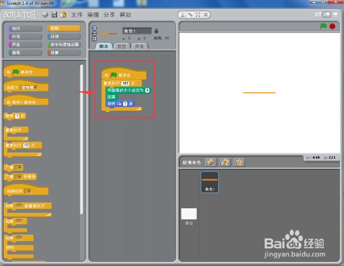 打开scratch1.4,进入其本家儿界面中;
