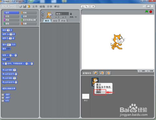1、打开scratch1.4,将小猫删除;