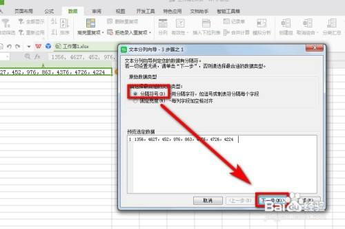 4、在弹出的文天职列标的目的导页面,选择【分隔符号】-【下一步】。