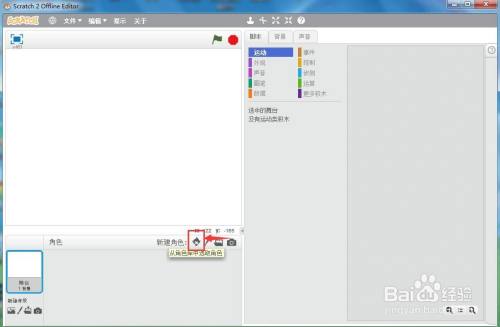打开scratch2.0,进入它的本家儿界面中;