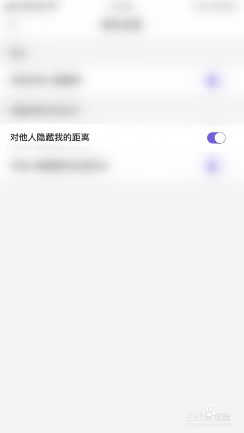 “对他人埋没我的距离”后面的圆点变为紫色即暗示开启非旅对他人埋没我的距离当作功