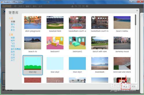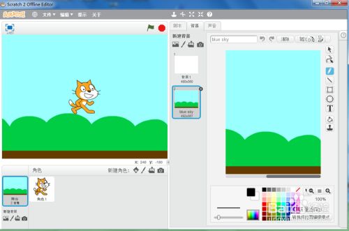 我们就在scratch中插入了一个布景,可以使我们的程序界面加倍美不雅。
