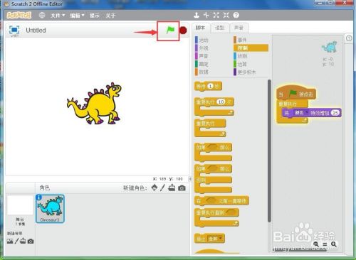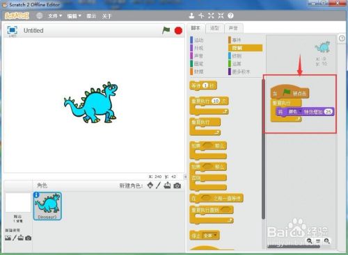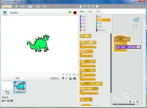 我们就在scrach中插入了一只龙,记住它的颜色,是蓝色的;