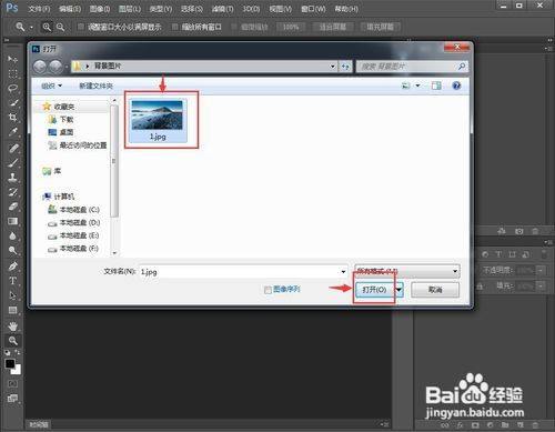 3、找到并选中备好的图片素材,按打开;