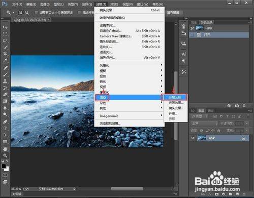 7、我们就给图片添加上了分层云彩结果。