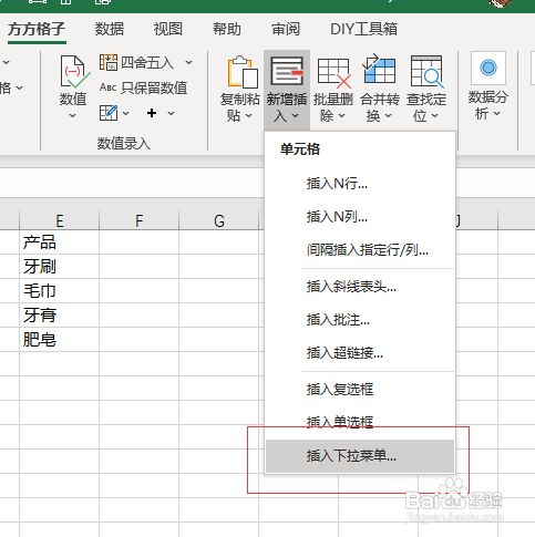 5、选择【插入下拉菜单】