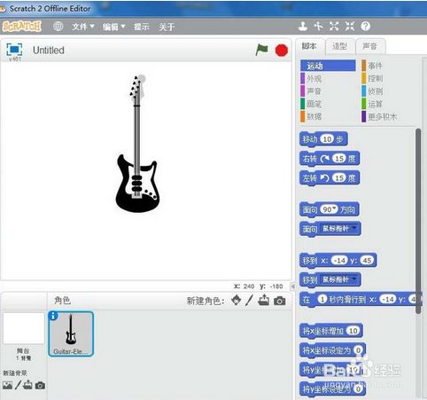 最后我们就在scratch中建立好了一个电子吉他脚色。