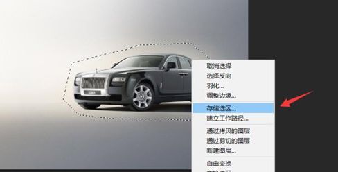 在左侧东西栏中选择套索东西,将整个汽车区域和暗影部门给勾选出来,如图: