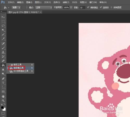 第三步:在左边的东西栏中,选择“油漆桶东西”。