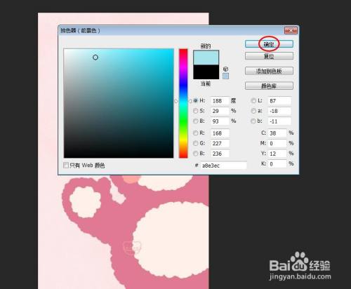 第四步:单击左侧东西栏中的前景色图标,在弹出的拾色器中选摘要改换的布景色。