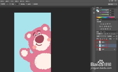 第七步:将填充上颜色的图层移动至抠图图层的下方,这样布景颜色就换好了。