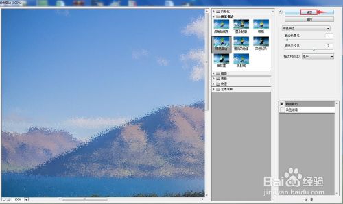 设置好喷色描边的参数,将描边长度设为1,喷色半径设为15,描边偏向设为程度,然后按确定;