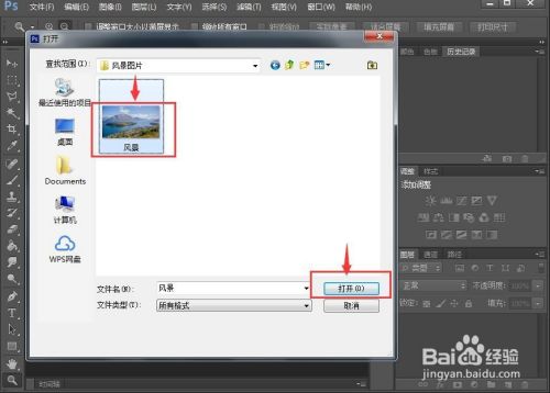 找到要处置的图片素材,选中后按打开;