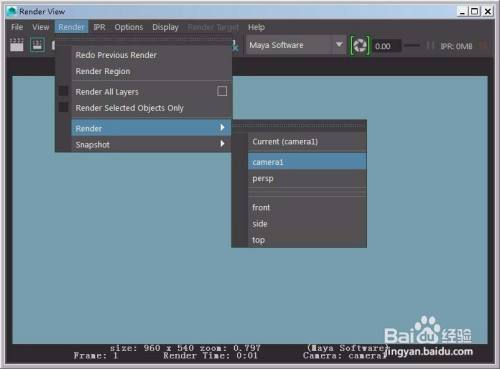 打开衬着面板,点击衬着render--render---camera1衬着摄像机角度