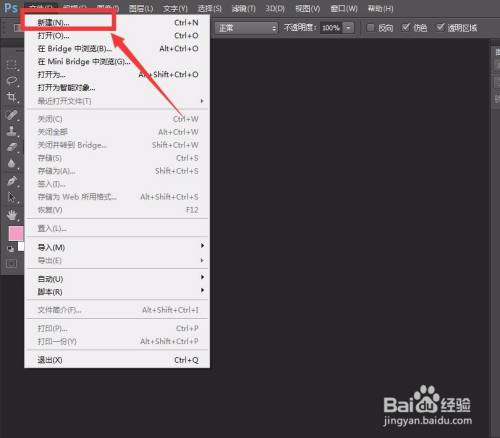 首先,我们打开photoshop,点击左上角的【文件】——【新建】,建立空白画布。