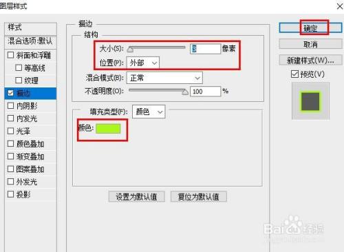 选择颜色、描边粗细和位置,点击“确定”。