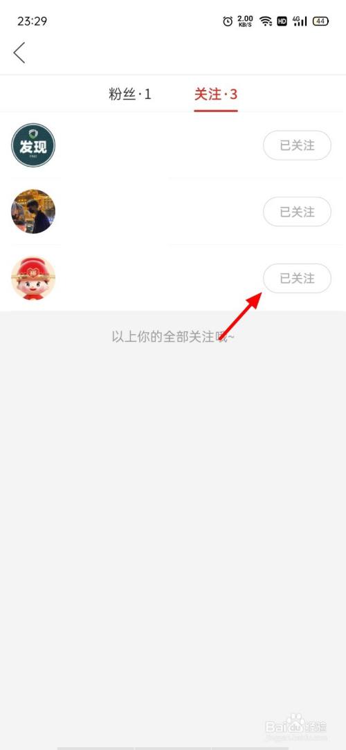 在存眷页面,点击已存眷。