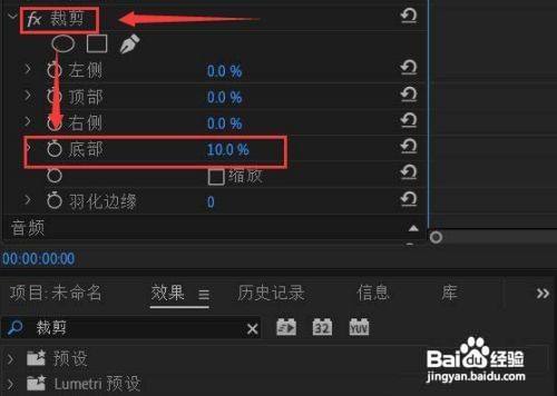 6.第六步找到裁剪选项中的底部按钮,并调整底部数值,即可实现对原有字幕的遮挡