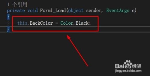 然后我们输入【this.BackColor = Color.Black;】语句。
