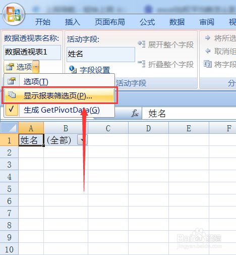 接下来点击菜单栏左上方的“显示报表筛选页”选项