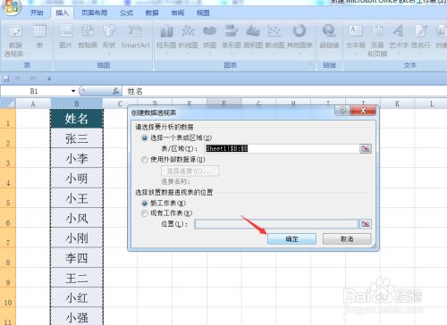 在“数据透视表”对话窗口中直接点击“确定”按钮