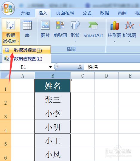 点击“插入”菜单左侧的“数据透视表”选项