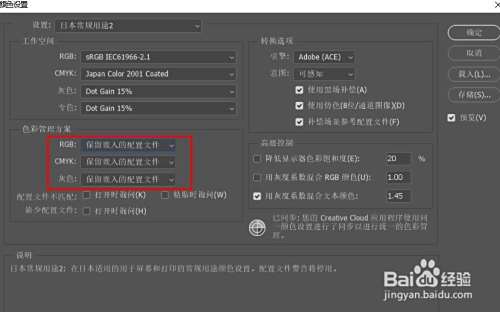 颜色办理策略处置颜色设置装备摆设文件不匹配。RGB、CMYK 和灰色工作空间各有其零丁的设置。一般我们需要的是是第一个,RGB。可是,确保所有三个工作空间都设置为保留嵌入的设置装备摆设文件并不影响编纂RGB颜色,保留默认即可。