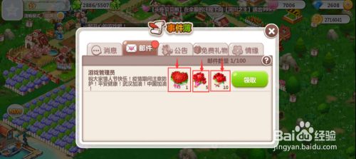 领取当作功,适才的邮件不再有了,我们就当作功获得了QQ空间农场发送的恋人节礼品。