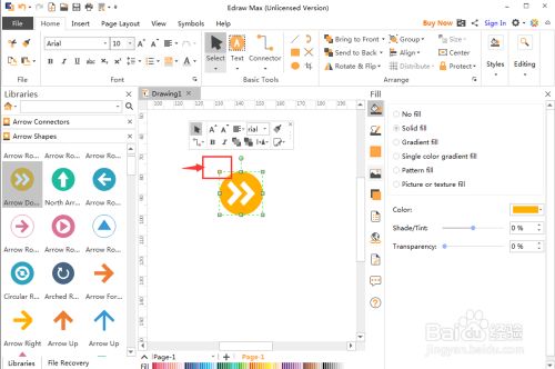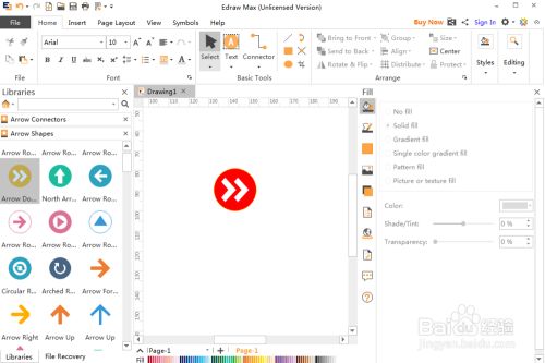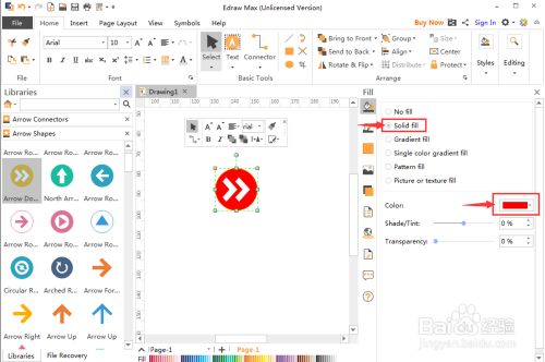我们就在Edraw Max中建立好了一个红色圆形双标的目的箭头。