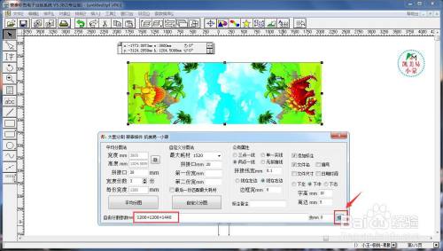 首先,我们打开蒙泰,导入图片。打开蒙泰插件凯美易小蒙中的“大图切割”界面,点击图片,按一下“取”,读取到该图片的尺寸。