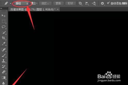 5、画一个风行的大致轮廓图。按“ctrl+enter”键将流星的路径转为选区。