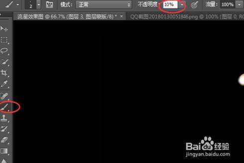 19、最后用柔边画笔对流星进行涂抹就完当作了。
