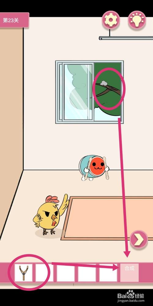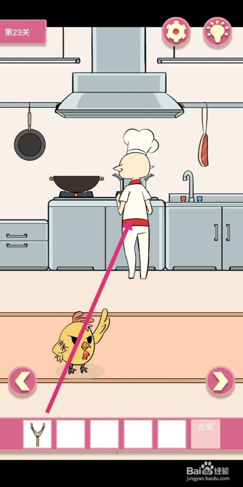 把【小石头】和【弹弓】进行合当作,再对【厨师】利用。
