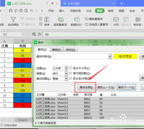 4、紧接着,我们选择【查找全数】,按“Ctrl A”选择所有黄色单位格的数据;